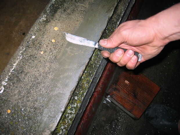 Luego me froté el resto sobre el pavimento mojado hasta que era fuerte y había un poco de rebabas en el borde.