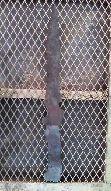Tras el Temple, el cuchillo fue templado a 450° F durante aproximadamente 2,5 horas.
