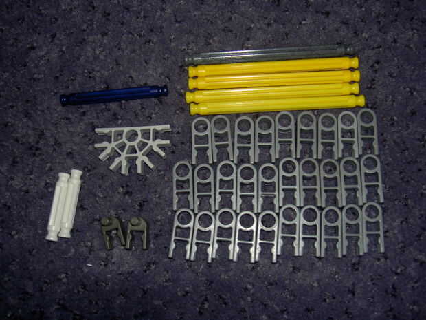 solo un cuchillo simple KVGPaso 1: partes si se puede leer aquí el pedazo requerido:2 barras rojo5 barras verdes3 Cañas blanco2 conectores verdes2 conectores naranja/gris (no gris en imagen pero luminosas es un conector gris)3 conectores amarilloPaso