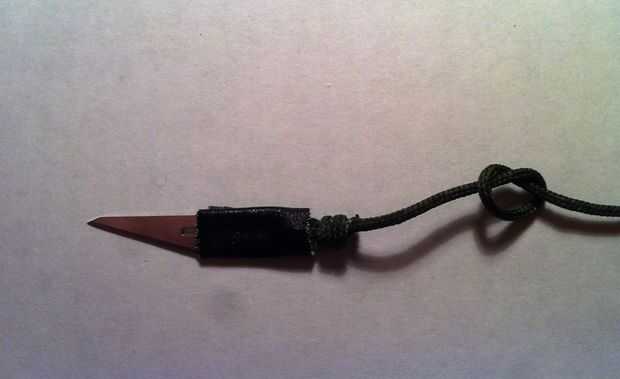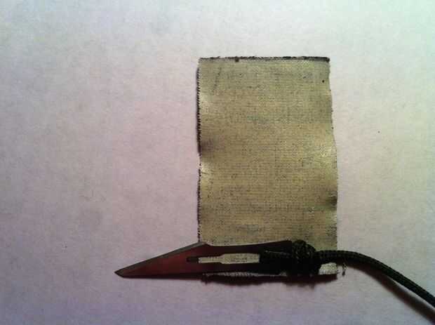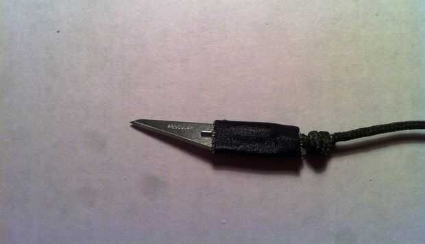 Use su mejor cinta y Envuélvala alrededor de su cuchillo del final de la hoja para cubrir todo el agujero. Hacer 2-3 vueltas pero mantenga la cuchilla plana. Una vez que termines, corte cualquier exceso de material.