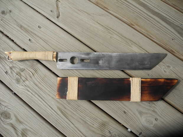 Cada paso para hacer un cuchillo de una hoja de la cortadora de césped está en este video. Por favor, haga clic en la imagen para ver el video. Es lo mínimo que necesita:HornoYunqueMartilloPinzas de largo alcanceguantesdelantalPegamento epóxicoabraza
