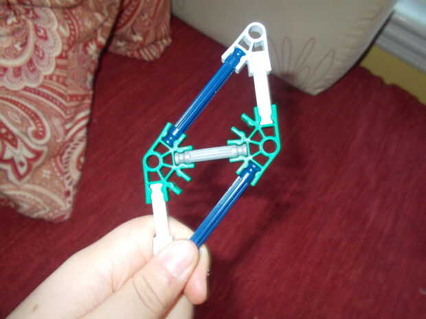este cuchillo KVG es muy fácil de hacer y es bastante fuerte. Necesita: 10 conectores azules, 1 conector blanco oscuro, 1 conector verde, 3 conectores amarillo, 2 conectores naranja, 2 barras amarillas, 2 barras blancas, 3 barras verdes, 1 barra roja