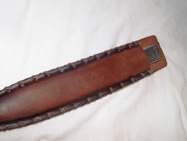 Tengo mucho tiempo libre en mis manos después de hecho el cuchillo me decidí a hacer una vaina, apenas para la diversión de ella!. De todas formas aquí es qué pasó con mi impulso, no es bonito, pero funciona realmente bien.