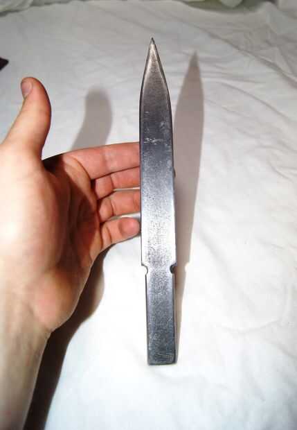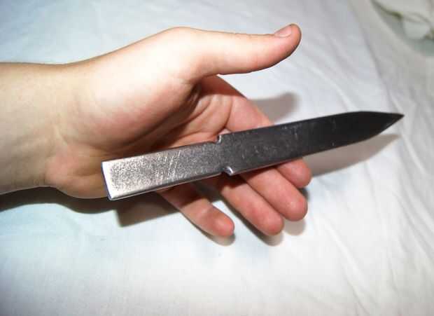 El cuchillo tiene un extremo puntiagudo, pero ninguna hoja. Así que su caja fuerte bastante para lanzar incluso para Newbs cual. Creo que utilizan acero, aunque no voy a apostar mi vida en.