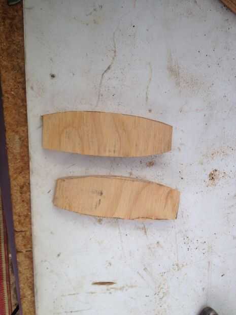 este es un paso a paso las instrucciones de cómo hacer fundas de madera para los cuchillos que hago.Paso 1:Paso 1: Reunir el material necesario.  Aquí tengo tres piezas de madera, dos piezas de color rojizo para los lados y la pieza más ligera para e