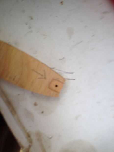 Taladre un agujero (yo usé un pulgadas de 5/64 bits) en la ranura para sostener la cuchilla. Luego sujete ambos juntos y taladre un orificio a través del agujero ya perforado en el otro trozo de madera. Entonces clávelos juntos.