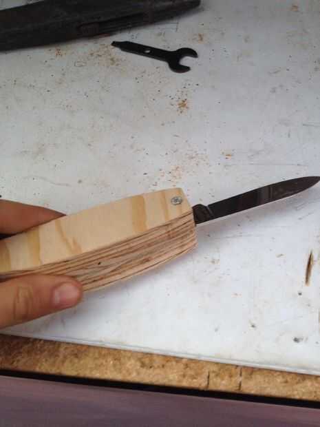 Tiene una navaja vieja sin un mango (este vino de una leatherman), aquí es una manera barata, simple, mango cuchillo de madera que puede hacerse para adaptarse a su mano. Así como un protector de la hoja.Paso 1: Lo que va o puede necesitar:* Una long