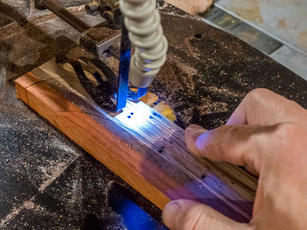 He tenido este cuchillo de pan 20 años y todavía tiene una cuchilla afilada.El mango de madera comienza a pudrirse un tiempo hace (a la izquierda en el fregadero de la cocina muchas veces), así que era momento de hacer un nuevo tirador.Utilicé una pi