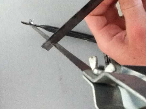 Fabricación de un cuchillo de una hoja de sierra.Herramientas:-Ángulo de amoladora o Dremel o sierra para metalesSierra - Sierra de cinta o couping-Lijadora de banda-Taladro de mano-Archivo metal-Papel de arena o piedra de afilarMaterial:-Marcador-Ho