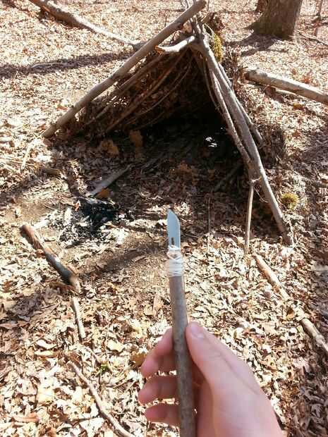 esto es un cuchillo de supervivencia que hice con cosas de mi lata de la supervivencia y algunas cosas que puedes encontrar en la naturaleza. No es el cuchillo más grande, pero su muy útil, usted puede limpiar su pescado, usted puede cortar madera o