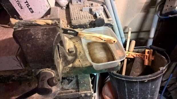 ** Nota: En mis fotos, el aceite que utiliza es muy oscura y turbia, esto es porque he intentado mezclar el aceite con una pequeña mancha para oscurecer la madera ligeramente, lamentablemente la Mancha era agua basado y no mezcla con el aceite - creando una mezcla horrible de nublado glóbulos de mancha a la izquierda en el mango que tenía constantemente limpiarse lejos. En el futuro mancharán la madera antes del tratamiento para lograr un acabado más oscuro, o como alternativa utilizar un tinte de alcohol base - que he leído es la única manera de mezclarlo con aceite danés.
