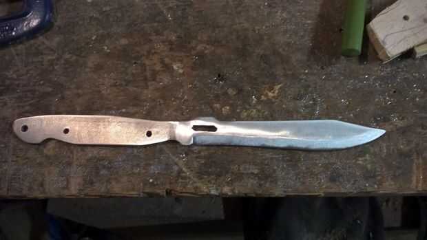 Finalmente, usted necesitará utilizar un disco de lija de grano de 240-320 para brillar el filo de la cuchilla y cuchilla plana, que puede ser pulido después. Uso el mismo método que antes de arrastrar ligeramente la hoja a través del disco giratorio, tendrá que quitar todos los rayones en el disco, no te preocupes lijado la sección del asa mayor que un grano 120 como sólo va a ser cubierto por las escamas de todos modos. La sección de la hoja puede ser lijada a un grano 600 + si de verdad quieres un acabado de alto brillo, pero por ahora te recomiendo dejarlo como está, será pulido una vez terminada de todos modos.