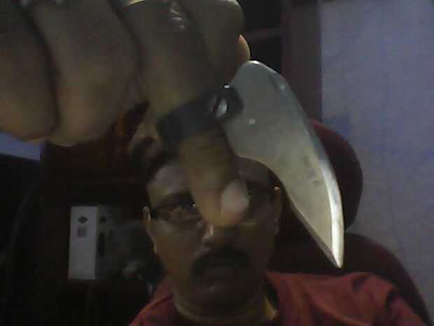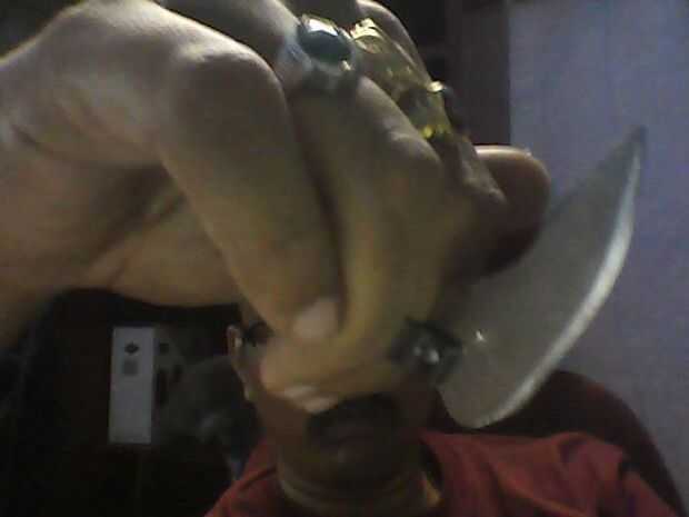 Historia para este cuchillo:Mi hijastra es muy creativo y competente en la cocina. Cosas que ella puede convertirse en una comida fabulosa. Para su graduación de high School secundaria actual hice un cuchillo de cuero rollo así que ella podría tomar