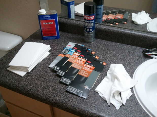 Una variedad de papel de lija de grano alto - $3 / (paquete de 5 hojas) * 5 paquetes = $15