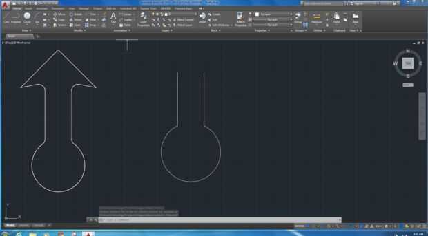 Ahora para hacer la pieza de cuchillo 1 necesitamos para deshacerse de la parte del círculo entre líneas. Para ello haga clic en el comando de corte y seleccione las 2 líneas como son los bordes de corte. A continuación, haga clic en entrar y pinchamos en la parte del círculo entre líneas. Cuando acabado debe parecerse a la imagen de arriba