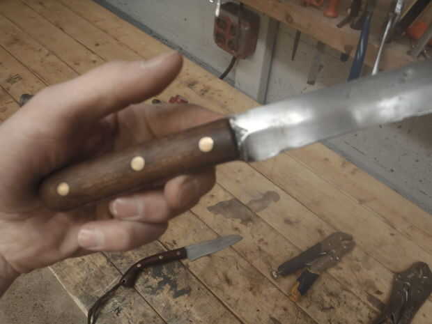 este es probablemente mi mejor cuchillo que he hecho hasta ahora.He utilizado acero al carbono 1065 y nogal para las escalas de madera y latón de 1/4. ninguna razón para 2 pines, normalmente esto lo hago tres fue simplemente diferenteEl acero comenzó