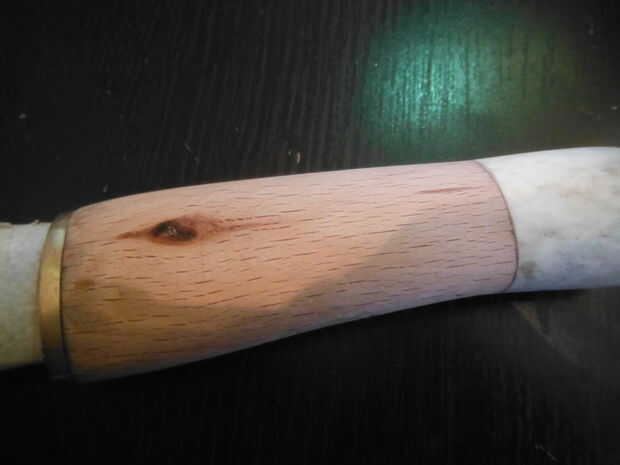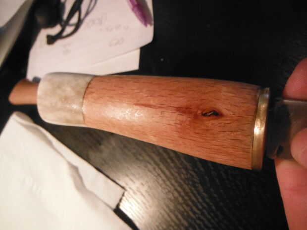 Es importante preservar su cuchillo para que no es dañado por el agua y también lo hace ver mucho mejor. Una forma de hacerlo sería utilizar barniz; sin embargo una forma que se ve mucho más bonito y resalta la veta de la madera mucho más claramente es utilizar el aceite. El mango de su cuchillo no va a entrar directamente en contacto con cualquier alimento se puede utilizar un aceite que deja una mancha o un sabor. El mejor aceite para la madera preservando se hierve aceite de linaza como que no contiene agua, aunque deja un sabor y puede ser dañoso si ingestionado. Para un cuchillo que se utilizará con la comida mucho sugiero usar aceite de girasol o aceite de nuez (sólo si tu no alérgico a las nueces, obviamente).