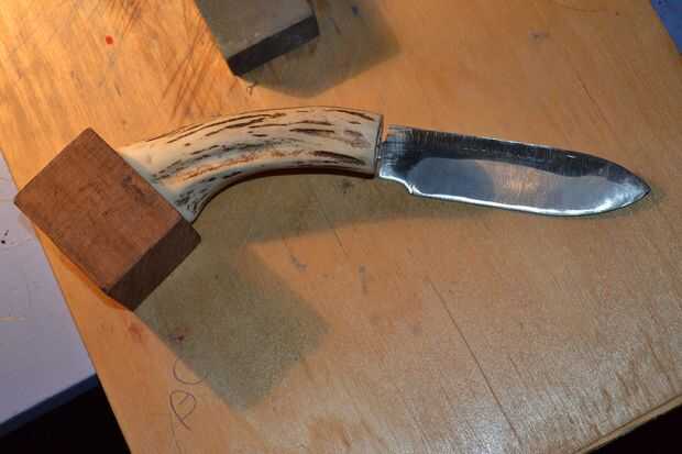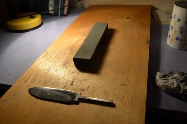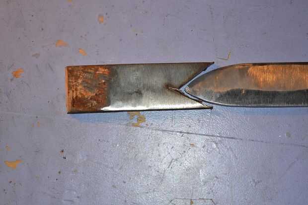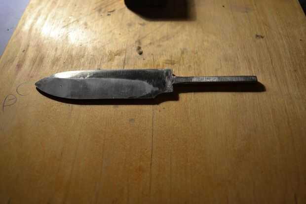 El principal problema era, que no tengo una fragua, así que tuve que hacer la hoja de una placa de acero.