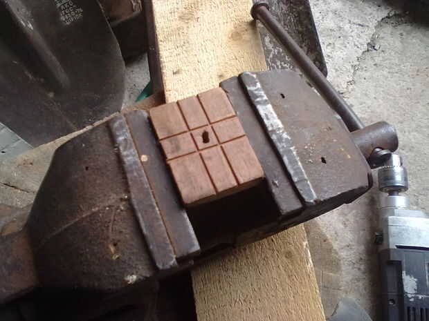 Luego perforé un orificio en la empuñadura.