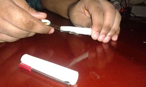 1 º quitar la punta del puntero y cortar la parte superior de la pluma y luego fijar la hoja.