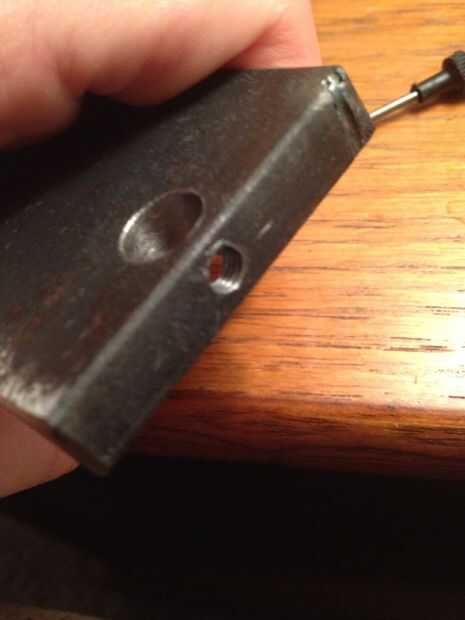Toque ahora el agujero para que puede atornillar el tornillo para que el titular del escribano no se puede mover a menos que usted Afloje el perno de.