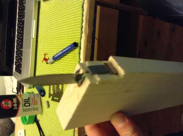 Los soportes de la cuña en la madera (pongo uno ontop del otro) frente a eacthother, con hoja se situe en sala.