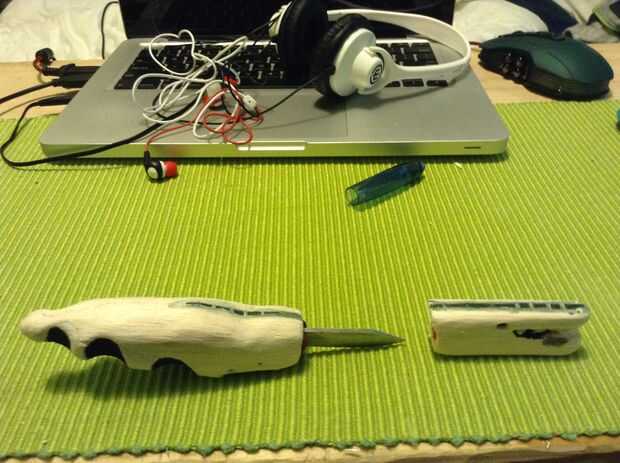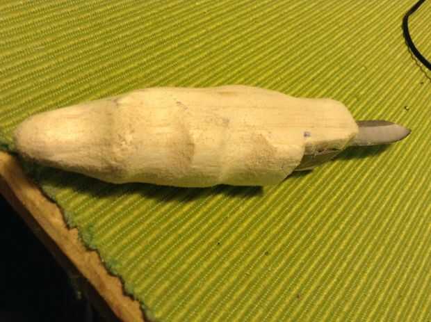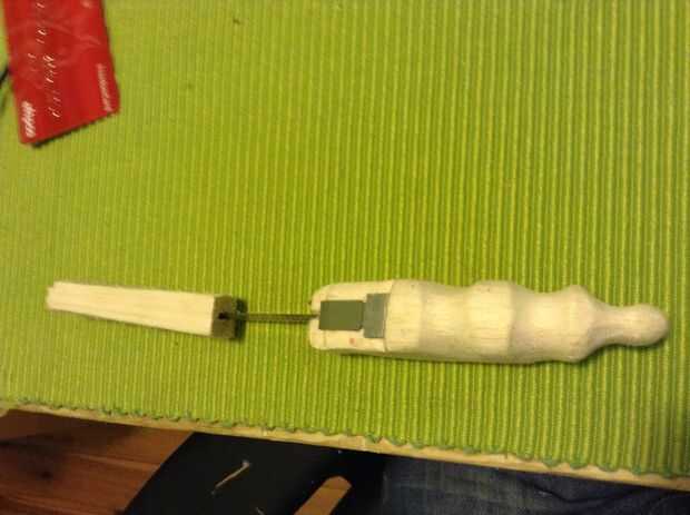 Una cubierta de la cuchilla puede hacerse de la madera sobrante moldeándose y presionando la lámina en él (no todos a la vez, empujar y mover para hacer el agujero más grande para el disco a una empresa, pero dando agarre).