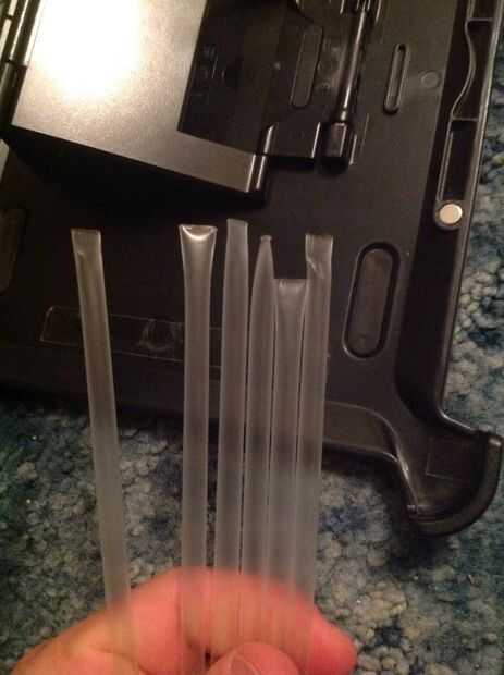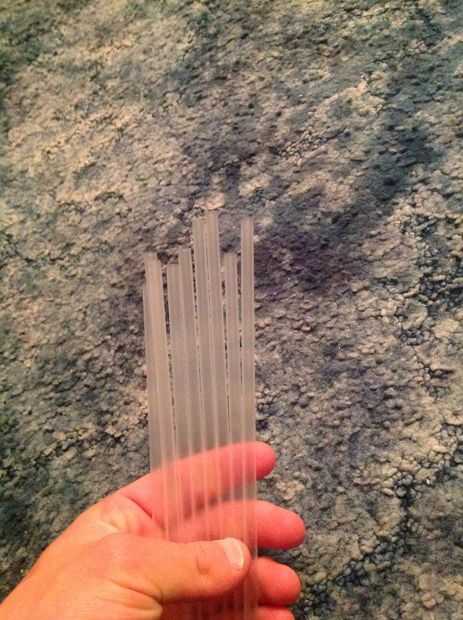 Sellar los extremos de algunas pajas con las tenazas y una llama, luego poner lo que quieras que caben en las pajas. Sellar el otro extremo la misma manera y ahora tiene un conjunto de paquetes sellados en el cuchillo.