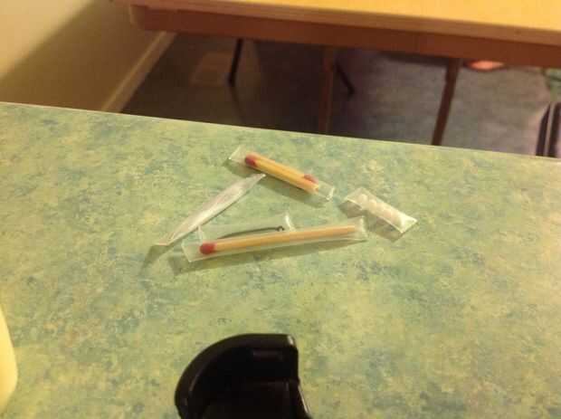 Usé a los partidos, un anzuelo alisado que puede ser doblado más adelante, tabletas de purificación y algún hilo de pescar. Algunas otras ideas de cosas poner en las pajas son de hilo y aguja, Asprin o cualquier pastillas para alergias personales o enfermedades.