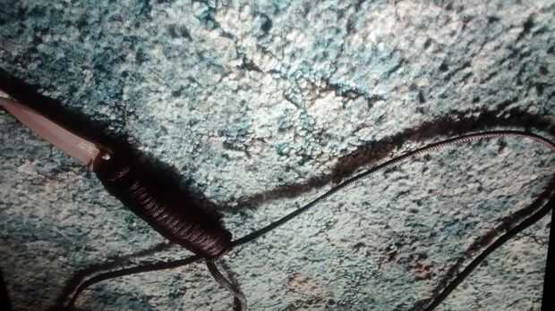 Paracord es tan espesa que habría hecho mi mango demasiado voluminosa, usé gutless paracord en su lugar. Esto es simple, sólo saque los centros blancos de la médula.