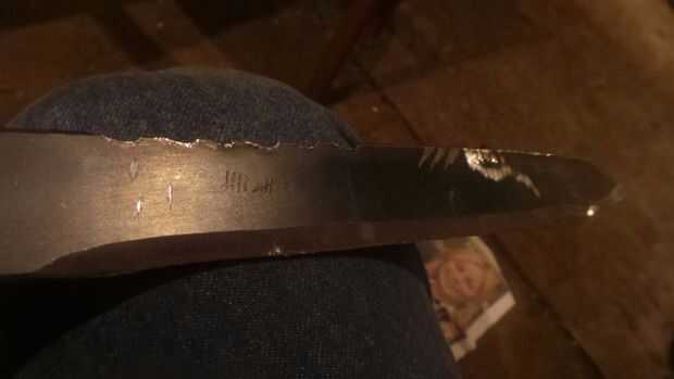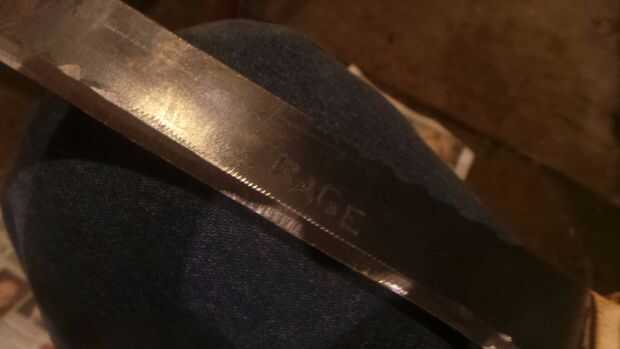 Había grabado una huelga pequeña tally y la palabra 'RAGE' porque sólo cabe la cuchilla tan bien. Experimentar con diferentes marcas y arañazos para sacar realmente.
