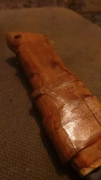Paso final absoluta fue perforando un agujero a través de la abducción y enhebrar un cordón con un nudo en el extremo de la misma para crear una cuerda improvisada.