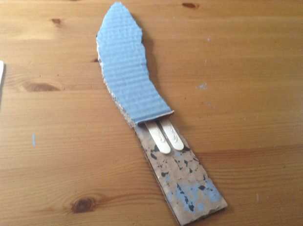 le mostrará cómo construir un buterflyknife(prop)cuchillo siccors: necesidad o exacto, cartón, un giro tie (corbata para bolsas de basura), una regla, grapadora y grapas.Paso 1: planes de heres los planes debe construir 4 piezas 2 manijas, la hoja y