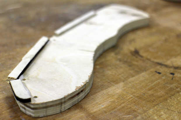 Para permitir espacio para que la hoja entre las asas usé pequeñas tiras de madera como separadores. Estos aislamientos fueron ligeramente más gruesos que la hoja.