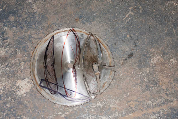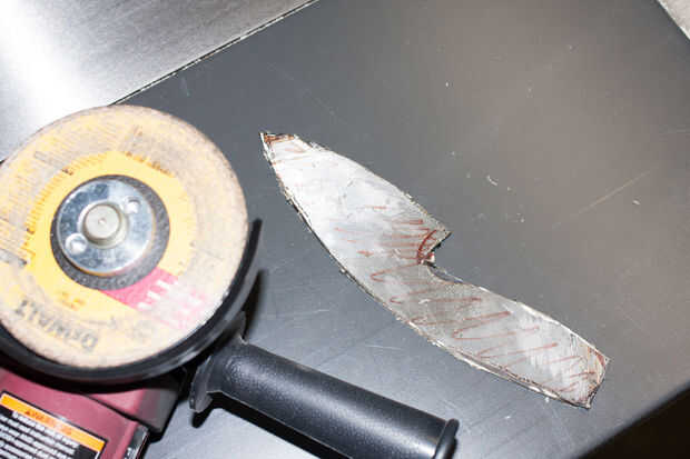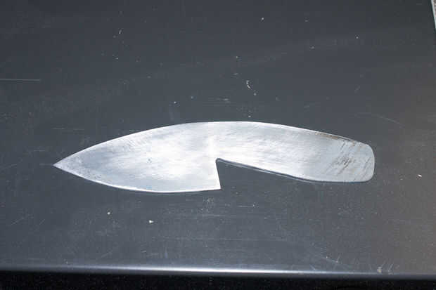 Utilizando un marcador dibujar la forma de la hoja que desea hacer. Corte la forma de la lámina hacia fuera usando una amoladora con un disco de corte de metales. Verifique que la hoja no está caliente durante el proceso de corte, si la hoja se calientan la inmersión en agua fría.