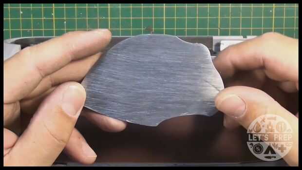 Fui hasta 100 lija para perfeccionar la forma y también quitar óxido de las dos caras. La forma de la navaja ahora se asemeja bastante a lo que tenía en mente. "Mango" fue también rebabas durante este paso.
