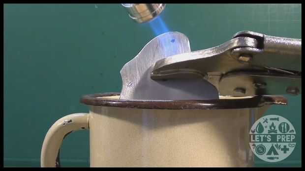 Por esta razón probé una técnica llamada punto de recocido. Utilizando unas pinzas de agarre mordaza sumerge el cuchillo en el agua mientras que usar un soplete para calentar un área específica.