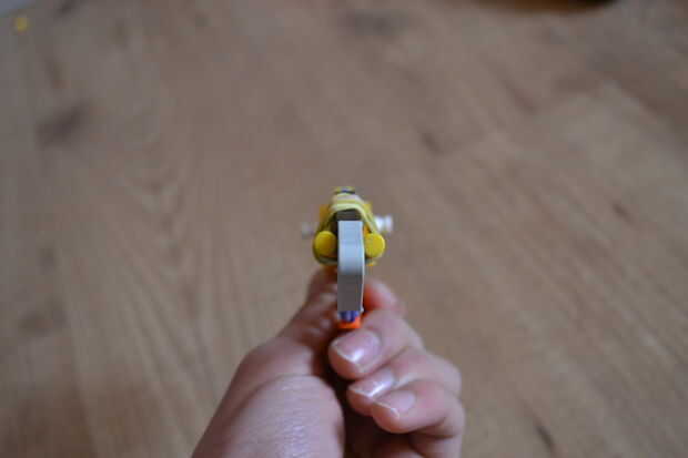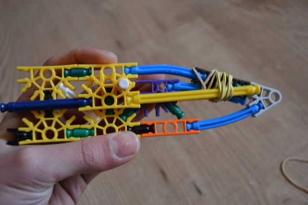 este cuchillo KVG es muy fácil de hacer y es bastante fuerte. Necesita: 10 conectores azules, 1 conector blanco oscuro, 1 conector verde, 3 conectores amarillo, 2 conectores naranja, 2 barras amarillas, 2 barras blancas, 3 barras verdes, 1 barra roja