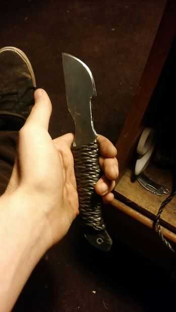 Esta es mi opinión sobre un cuchillo tracker de supervivencia. Este cuchillo contará con 2 posiciones de agarre de mano, sorteo/cortar lámina, mini hacha como superficie para picar, pelar gancho, Sierra (opcional), para manija de cordón y cordón.