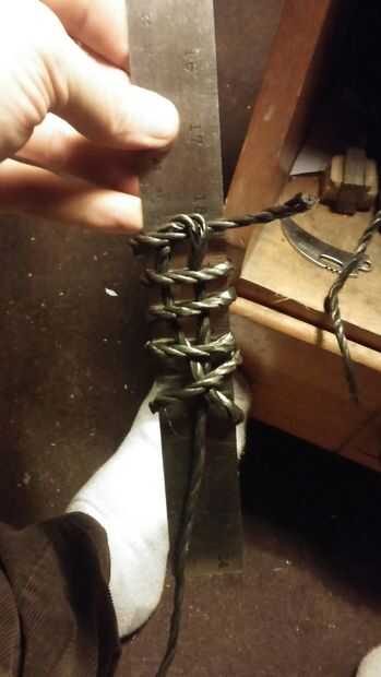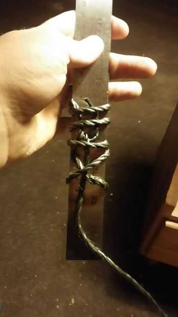 Esta es la forma de la manija simplificada. doble un lazo hacia el final de la hoja y envuelva el cable de la parte inferior de la empuñadura. Al llegar a la cima con el cordón de lazo el extremo de su cable a través y tirar el exceso en la parte inferior duro traer el lazo y el extremo de la cuerda en el centro de la envoltura. cortar el exceso y listo! (ahora si ha perforado su agujero tomar algún cable de bucle a través de conexión no y su cuerda!)