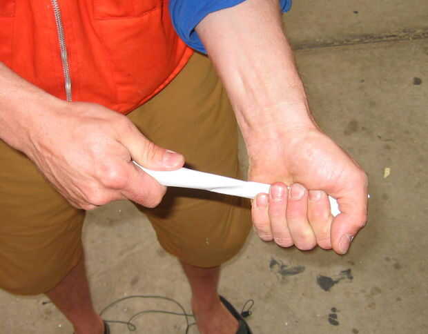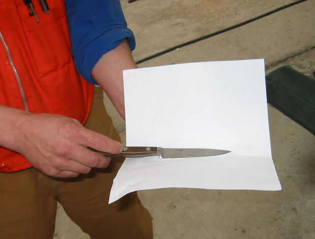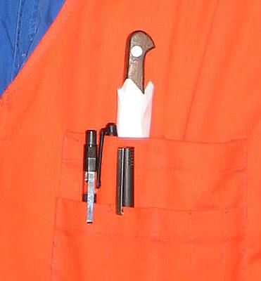 Así como cualquier buen mono de usar herramientas, agarro cualquier cuchillo es útil, rocen con algo hasta que es agudo, y cuando he terminado abrir la carta o lo que sea, enrollar la hoja en una hoja de papel, doblar el extremo y fingir es un cuchillo de bolsillo.