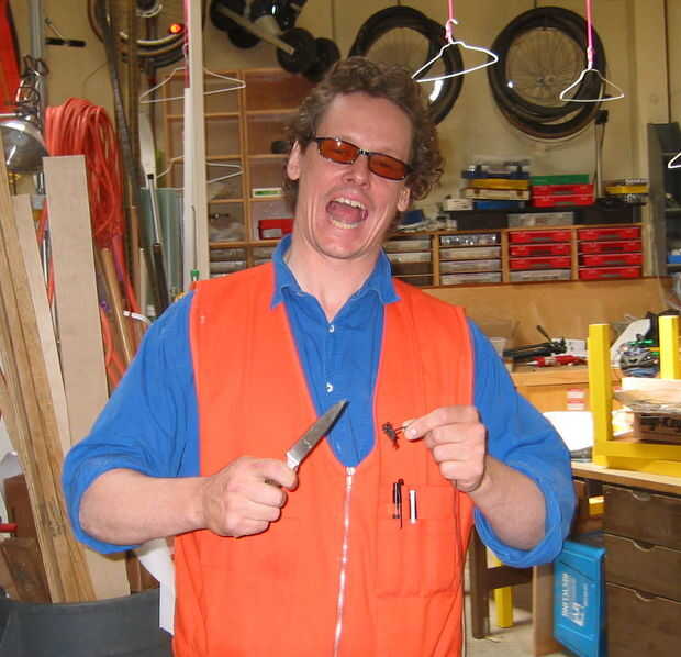 Al día siguiente tengo que cortar un trozo de cuerda y Dammit! ¿Dónde está mi cuchillo?! Venga, sí.