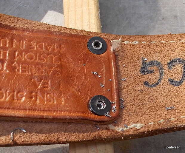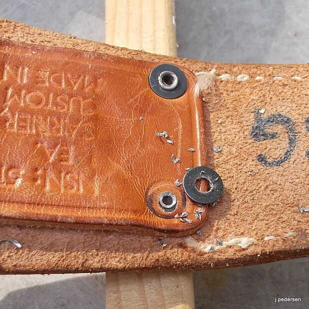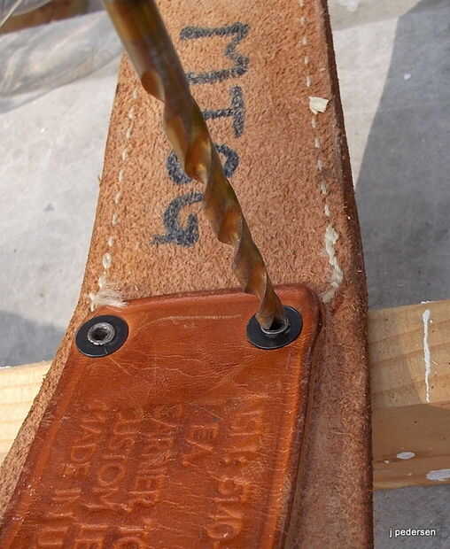 Taladro de los remaches en la presilla, utilicé un 3/16" por la originales remaches y arandelas de 1/8" tamaño de bits.