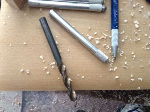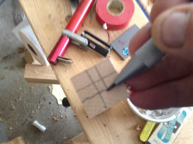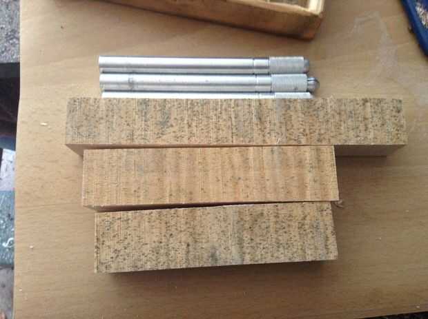 he utilizado algunos trozos de arce rizado que tenía en la papelera para la mina. Los cuchillos x-acto tengo son alrededor de 5-6" de largo, así que asegúrese de que sus desechos sean lo suficientemente largos. una vez que los tienes cortados a escuadra, marca de centros en cada extremo.