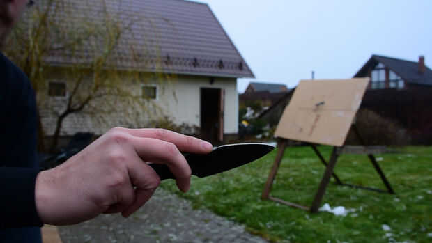 Coloque su mano sobre el cuchillo como se muestra, por lo que es el dedo índice en la parte superior. Que desee para que el cuchillo Deslice su dedo como le tiran. El agarre debe ser flojo que el cuchillo se desatado con apenas esfuerzo, pero suficientemente firme que no resbale hacia fuera antes de previsto.