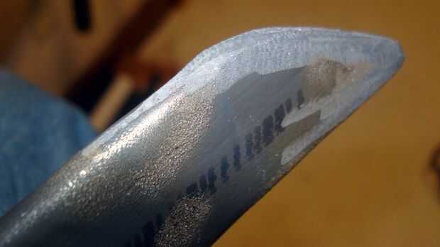 Biselar los bordes, embotar la punta, limar cualquier protuberancias persistentes.