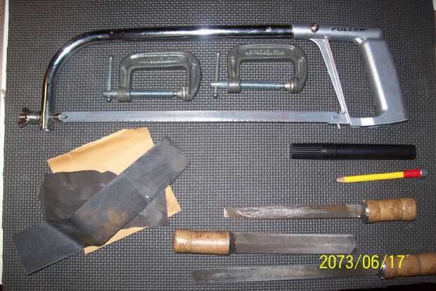 -Viejos cuchillos de mantequilla: mina encontré en una tienda de 0.25$ cada uno. Yo aconsejaría tomar algo del mismo modelo y que no son de espesor. Thiker hojas serán más fuertes, pero pueden dificultar trabajo detallado en algún tipo de materiales como espuma o cuero.
