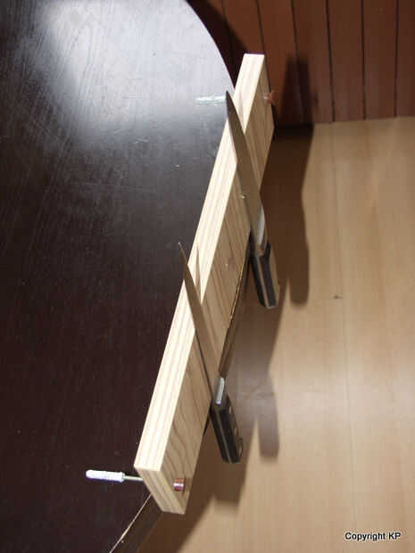 Prueba final. Mantenga.  ¿Usted puede poner 5 cuchillos... y lo que, por buena causa, sostener esta cuchillos?
