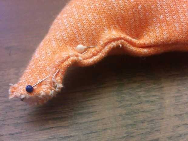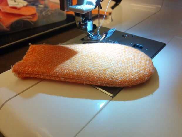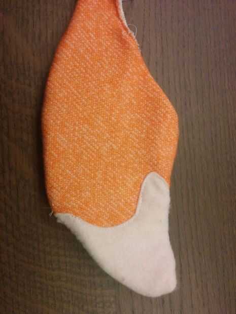 Finalmente hemos llegado al paso donde podemos comenzar a sembrar todo juntos y ver nuestra fox tome forma. Primero tomé los trozos sueltos y coserlas juntas como las patas y la cola. Tomar las dos piezas y establecer uno encima del otro con el exterior del zorro uno contra el otro. Sembrarlas juntas y girar la pieza de adentro hacia fuera, así que usted no puede ver las puntadas ya. No olvides dejar la parte abierta (el lado que fije el cuerpo) así que usted puede rellenar más adelante.
