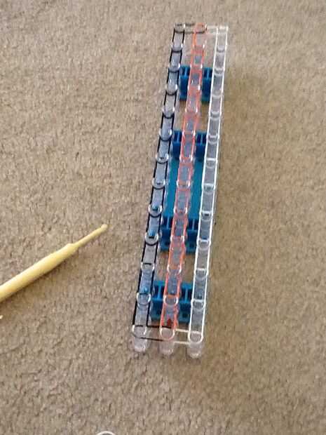 este diseño es muy fresco y divertido para hacer. Espero que os guste estas instrucciones!Paso 1: Cómo empezar Primero te vas a poner tu telar en forma rectangular.Paso 2: Cómo colocar elásticos Ahora vas a conseguir cualquier color que desea y elegi